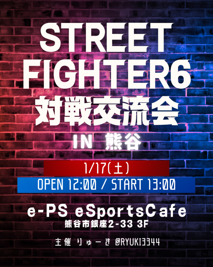 e-PS常連様オフ会主催者りゅーき様のりゅーきオフ会ですが過去15回開催されましたが2026年1月よりオフ会名称を「STREET FIGHTER6 対戦交流会 in 熊谷」となりました。主催は「りゅーき」様個人主催オフ会となり[e-PS」も今まで通り全面的にご協力いたします。