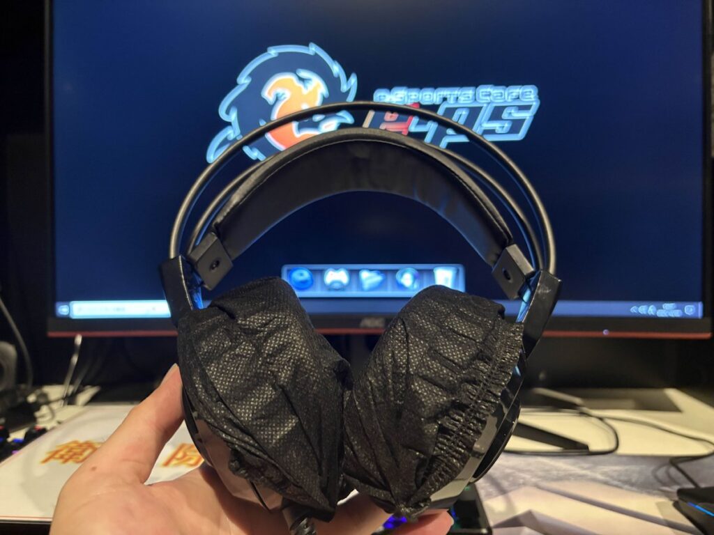 当店では2019年開店当初からご利用者様が安心安全にご利用出来るよう、様々な感染対策をしております。PCデスク&チェアーやヘッドセット、床拭き、WCなどのアルコール消毒は当たり前のことですがご利用者様自ら手の消毒などご協力いただき感謝感謝です。そこでスタッフの思い付きからヘッドセットに不織布カバーをかけることにしました!もちろんご利用1回ごとの交換で清潔感と安心感を感じていただければ幸いです。ヘッドセット本体も使用後は常にアルコール消毒しているので不織布カバーが苦手な方は勝手に取り外しても構いません。そんな enjoy. Play. Stadium. e-PS の快適空間で盛り上がってくださいね!